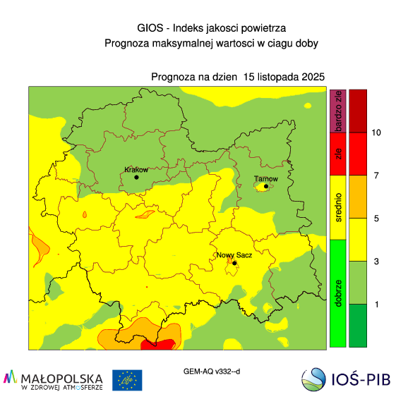 Dane o prognozowanej jakości powietrza dostarcza Instytut Ochrony Środowiska – Państwowy Instytut Badawczy.