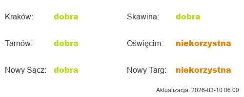 Aktualna jakość powietrza w Małopolsce
