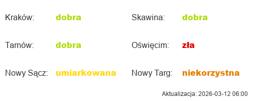 Aktualna jakość powietrza w Małopolsce