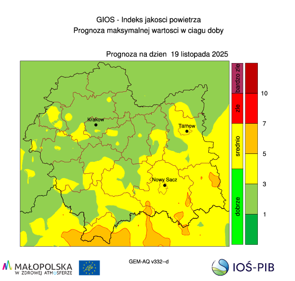 Dane o prognozowanej jakości powietrza dostarcza Instytut Ochrony Środowiska – Państwowy Instytut Badawczy.