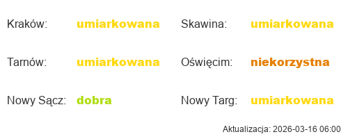 Aktualna jakość powietrza w Małopolsce