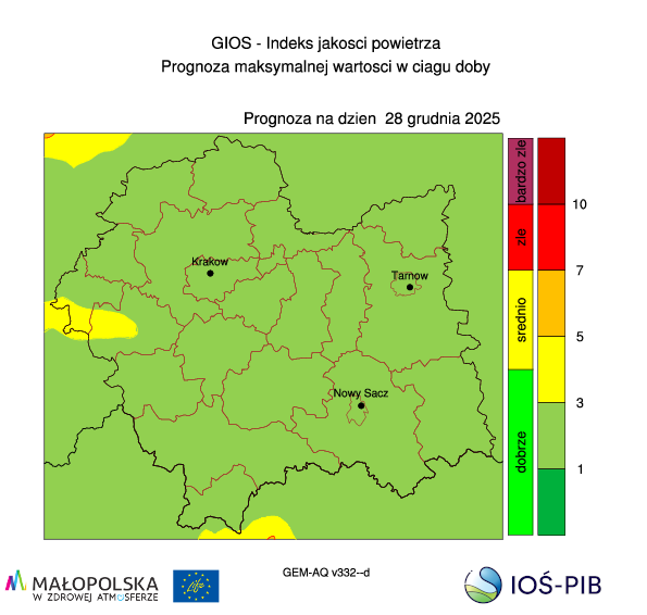 The air quality is very good. It is worth ventilating the rooms. Outdoor physical activity is recommended.