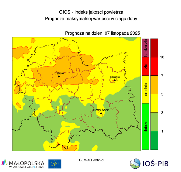 Prognoza jakości powietrza dla województwa małopolskiego