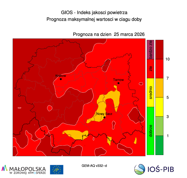 Jakość powietrza jest bardzo zła i ma negatywny wpływ na zdrowie. Osoby chore, starsze, kobiety w ciąży oraz małe dzieci powinny bezwzględnie unikać przebywania na zewnątrz. Pozostali również powinni ograniczyć przebywanie na zewnątrz do niezbędnego minimum.