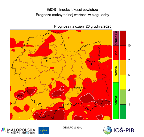 Jakość powietrza jest zła. Wszyscy powinni ograniczyć do minimum wszelką aktywność fizyczną. Osoby wrażliwe mogą mieć gorsze samopoczucie i nasilenie objawów chorobowych.
