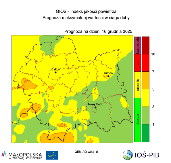 Prognoza jakości powietrza dla województwa małopolskiego