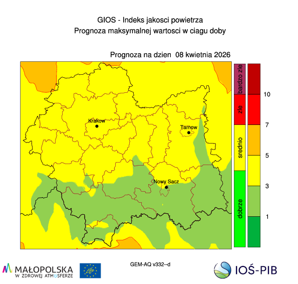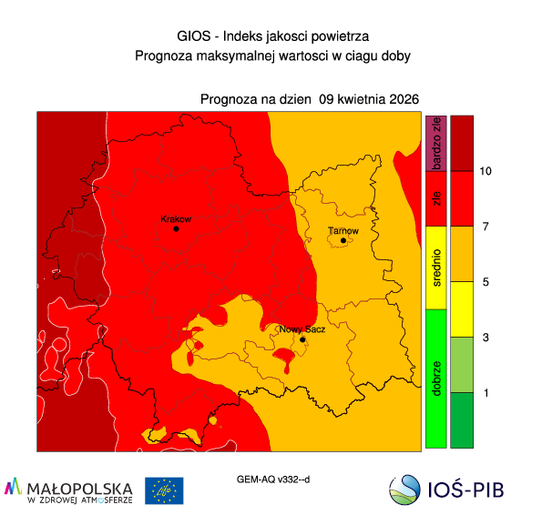 Prognoza jakości powietrza dla województwa małopolskiego