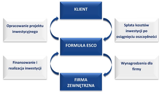 - Umowy o zarządzanie zużyciem energii, na podstawie których firma ESCO otrzymuje zapłatę za świadczenie usługi energetycznej.