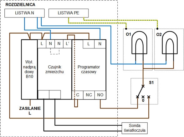 - Oświetlenie zewnętrzne: Sterowanie oświetleniem zewnętrznym, takim jak oświetlenie uliczne, parkowe czy dekoracyjne, ma wpływ na bezpieczeństwo, estetykę i efektywność energetyczną przestrzeni publicznych. Automatyczne włączanie oświetlenia po zmroku i jego wyłączanie o świcie, a także zmniejszanie jasności w nocy, pozwala na minimalizację zużycia energii.