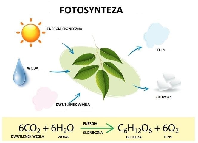 Rośliny, aby wzrastać i rozwijać się, pobierają wodę z gleby i dwutlenek węgla z powietrza. Następnie, pod wpływem promieniowania słonecznego w postaci fotonów zawierających energię, cząsteczki wody i dwutlenku węgla są przekształcane w cząsteczki glukozy oraz uwalniany jest tlen, który jest produktem ubocznym i dostaje się do atmosfery. Cząsteczki glukozy dostarczają organizmom dwa istotne elementy: energię i węgiel potrzebny do budowy komórek i tkanek.