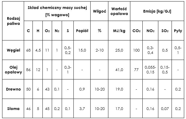 Poniżej przedstawiono charakterystykę energetyczną drewna, słomy w porównaniu do węgla i oleju opałowego.