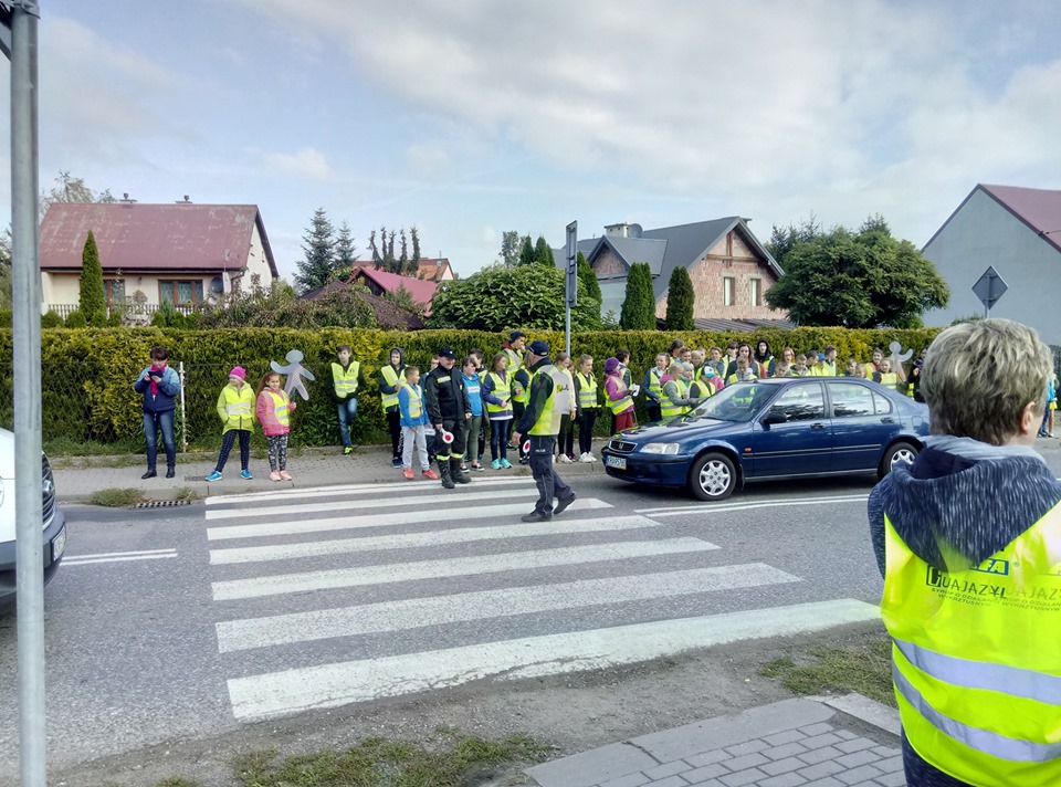 Kolejnym działaniem było przygotowanie happeningu na przejściu dla pieszych w centrum Piekar. Pod opieką druhów z OSP Piekary i Pana Dzielnicowego st. sierż. Tomasza Błażewicza z komisariatu Policji w Zabierzowie, dzieci zatrzymywały samochody. Każdy kierowca otrzymał ulotkę o alternatywnych środkach transportu i cukierka. Akcja miała na celu zwrócenie uwagi, że przez to niebezpieczne skrzyżowanie w centrum Piekar codziennie przechodzi około 160 dzieci. Reakcja uczestników ruchu była bardzo przyjazna.